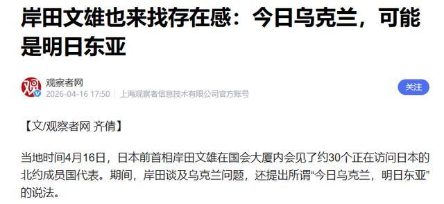 4月16日,日本前首相岸田文雄出现在国会大厦。当天他见的人不一般——来自北约30个成员国的访日代表。